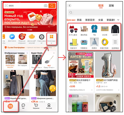 Отличительная черта "1688" – разделение товаров на: