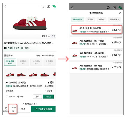 - Выберите желаемое состояние товара и размер