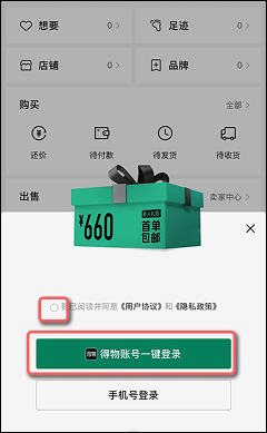 - Примите пользовательское соглашение и нажмите на кнопку "войти в аккаунт Dewu"
