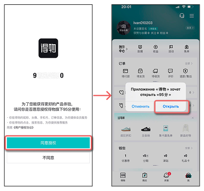 - Приложение Poizon запросит подтверждение на открытие приложения 95