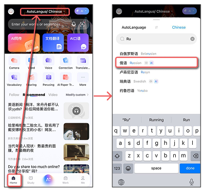 - В верхней части экрана нажмите на язык, на который нужно перевести