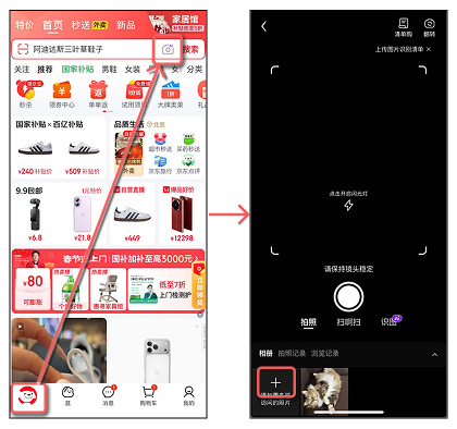 - Наведите камеру на товар или нажмите на + чтобы картинку добавить из галереи